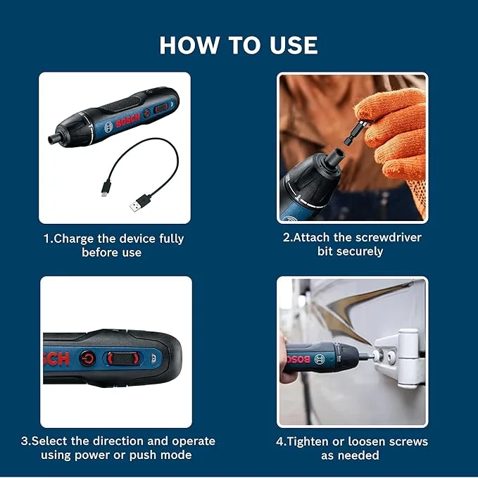 - Push & Go Operation This screwdriver starts automatically with a simple push. This intuitive operation makes your work faster and more comfortable, especially for repetitive tasks.