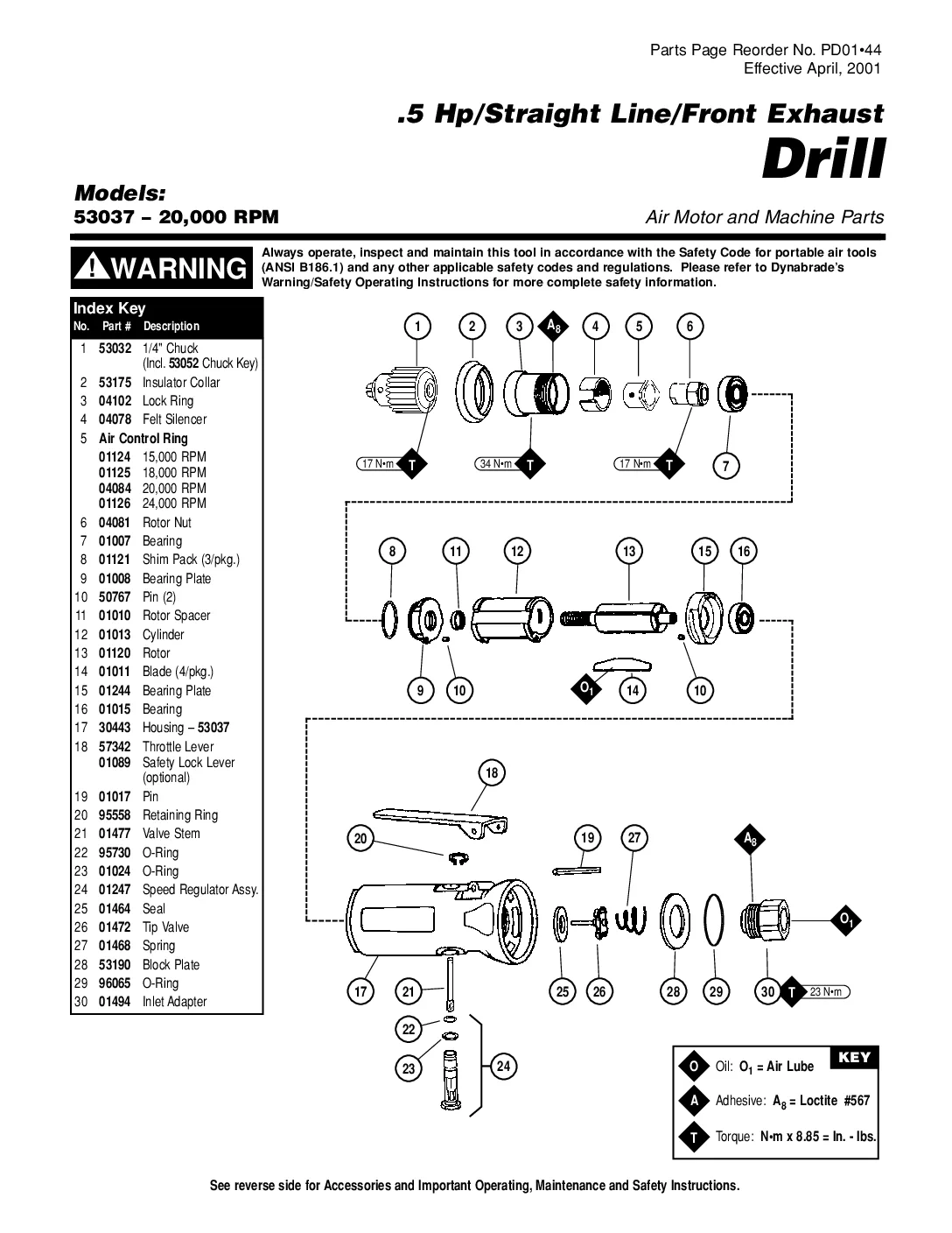 Dynabrade 53037 – 0.5 hp Straight-Line Drill (20,000 RPM)