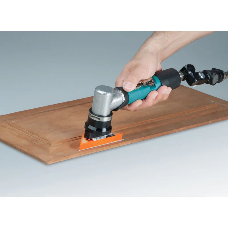 The Dynabrade 57906 Dynafine Sander comes pre-mounted with the 57956 Raised Panel Pad, featuring angled edges for precise sanding in tight corners and raised panel surfaces. Designed with a 1/32″ orbit for ultra-smooth finishes, it supports both coated abrasive and non-woven sheets, offering exceptional versatility for detailed sanding tasks.
