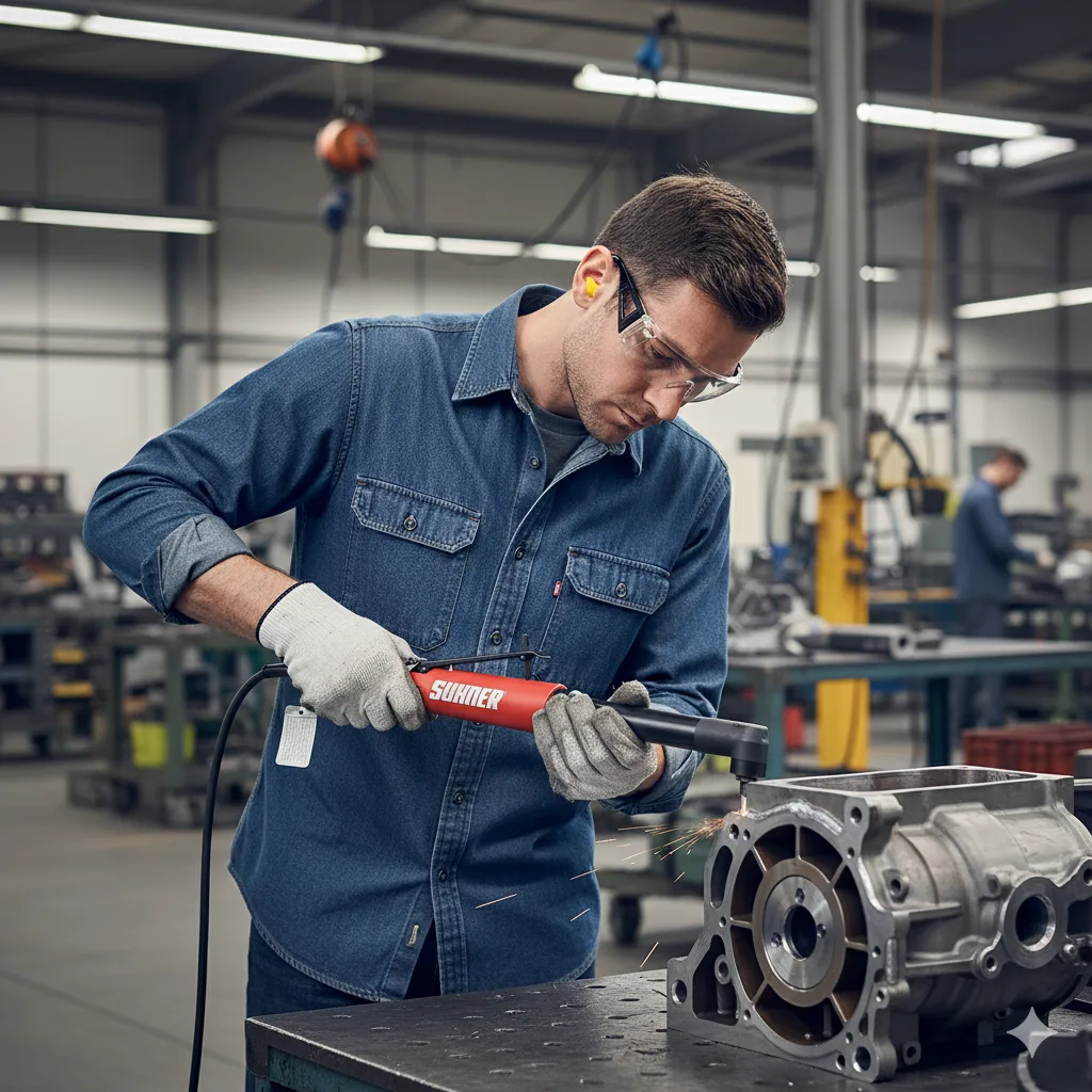 The extended spindle straight grinder LVC 20 is a high-speed precision air grinder designed for rapid, accurate material removal in industrial environments. Equipped with a 350 W motor and running at 20,000 RPM, it is ideal for fine grinding, deburring, and polishing in aerospace, automotive, and toolmaking industries.