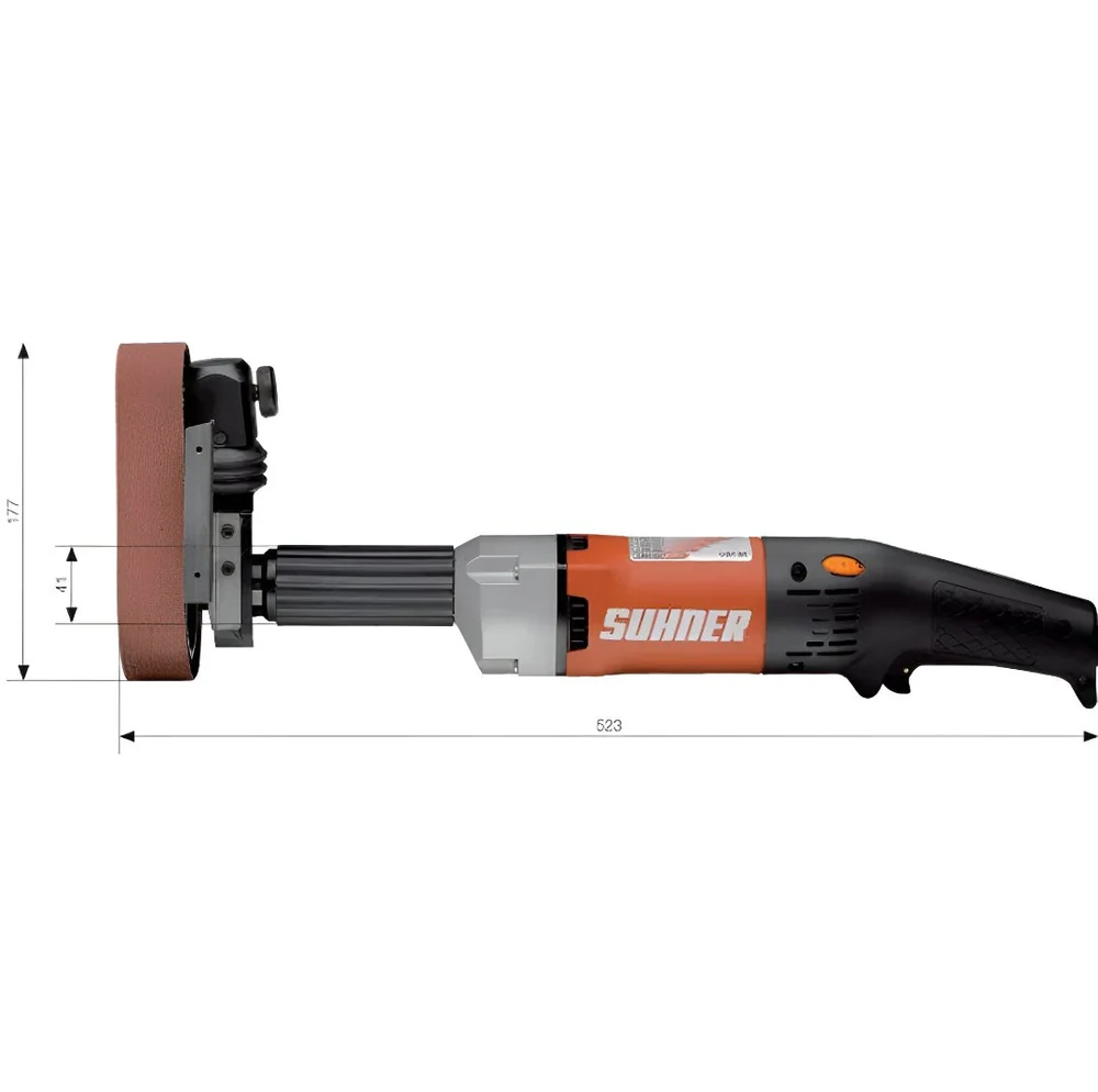 The SUHNER Belt Grinding Unit UBK 6-R is a versatile and high-performance tool designed for precise grinding of flat and shaped surfaces on stainless steel, chrome steel, other metals, and plastics. Featuring an excellent power-to-weight ratio, it provides smooth, controlled operation with a fully insulated single-phase motor.